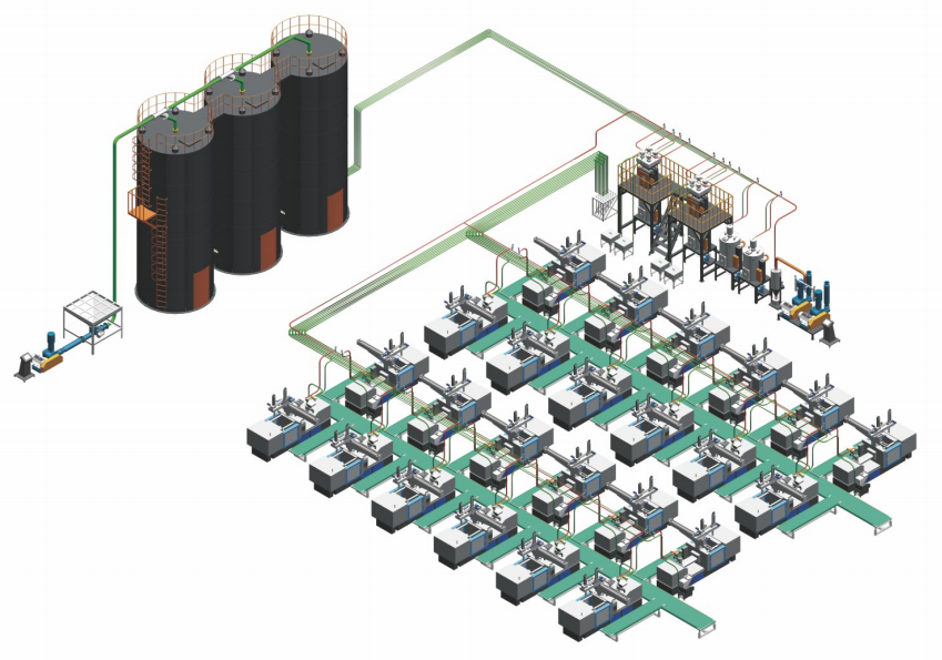 中央供料系统,又被称为注塑车间集中供料系统、自动化中央供料系统等,是专为注塑车间的塑料产品生产而设计的。 -