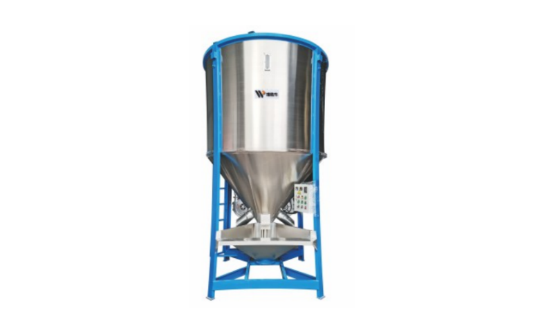 注塑行业大型立式拌料机是一种利用快速旋转的原理将塑料原料混合均匀的设备。 -